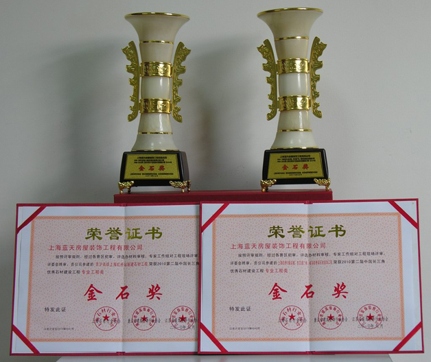 2010年09月,藍(lán)天公司京滬高鐵上海虹橋站新建石材工程;上海虹橋T2航站樓、東交通廣場(chǎng)、磁浮虹橋站石材裝飾工程紛紛榮獲第二屆中國長三角優(yōu)秀石材建設(shè)工程專業(yè)工程類“金石獎(jiǎng)”。
