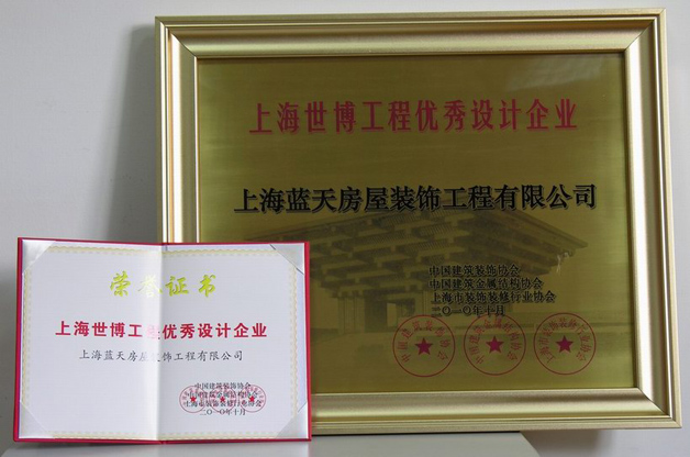 2010年10月,世博會(huì)圓滿落幕,在世博期間,藍(lán)天公司參與了一系列的世博配套工程,榮獲中國建筑裝飾協(xié)會(huì)、上海市裝飾裝修行業(yè)協(xié)會(huì)聯(lián)合頒發(fā)的上海世博工程建設(shè)功勛獎(jiǎng)、上海世博工程優(yōu)秀設(shè)計(jì)企業(yè)殊榮。