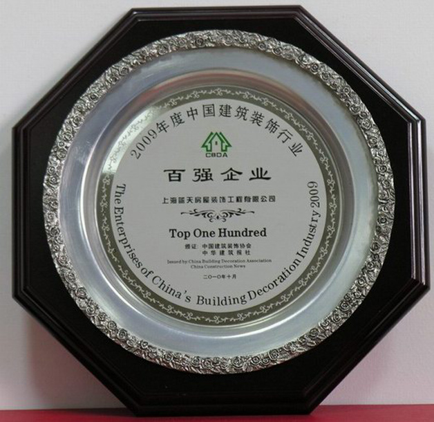 2010年10月,藍天公司捧回了第八個中國建筑裝飾行業百強企業獎牌。這是藍天公司在建筑裝飾行業品牌質量的又一認可。
