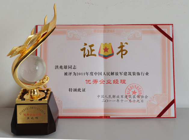 2011年11月,藍天公司董事長洪兆雄再次被評為中國人民解放軍建筑裝飾行業優秀副會長、優秀企業經理。
