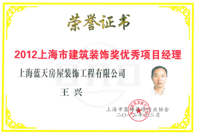 2012年10月,藍天公司榮獲上海市裝飾裝修行業(yè)協(xié)會頒發(fā)的三項大獎: