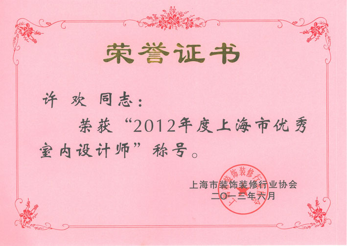 1、藍天公司被評為2012年度上海市優秀裝飾設計企業,公司已連續五年榮獲此殊榮。