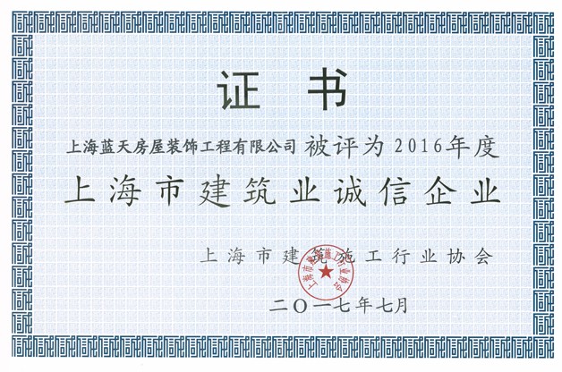 本次大會上,我公司被評為2016年度“上海市建筑業誠信企業”。至此,我司已連續三年被評為“上海市建筑業誠信企業”。