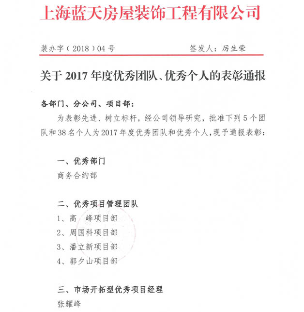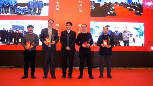 王衛東總經理宣讀了《關于頒發2017年度公司獲獎工程獎勵的通知》及《關于2017年度優秀團隊、優秀個人的表彰通知》2份表彰文件,表彰在2017年度獲得省市級獎項、國家級獎項的2個優秀項目團隊,表彰2017年度的5個優秀團隊和38名優秀個人。