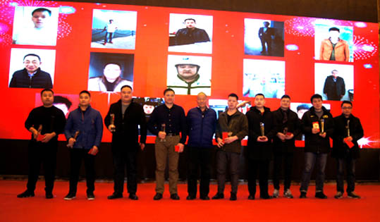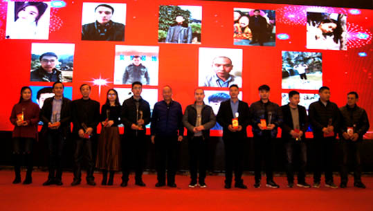 榮譽董事長洪兆雄、副總經理徐兵為公司2017年度“奮斗精英”頒發獎杯及獎金