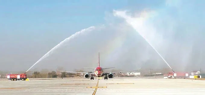 2021年12月2日9時,連云港花果山機場迎來從北京大興飛來的首班入港航班;11時,一架機身繪有孫悟空腳踏祥云、手捧蟠桃圖案的中國聯合航空“連云港花果山”號客機從花果山機場起飛,于12時40分抵達北京大興機場。這標志著連云港花果山機場正式通航,已使用37年的白塔埠民用機場同步關閉。