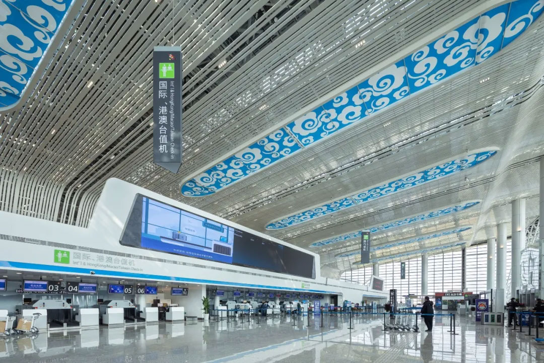 連云港花果山機場航站樓為兩層半前列式構型,我司承接機場航站樓整體裝飾裝修工程,主要包含國內/國際航站樓功能、貴賓區、地下換乘大廳等。