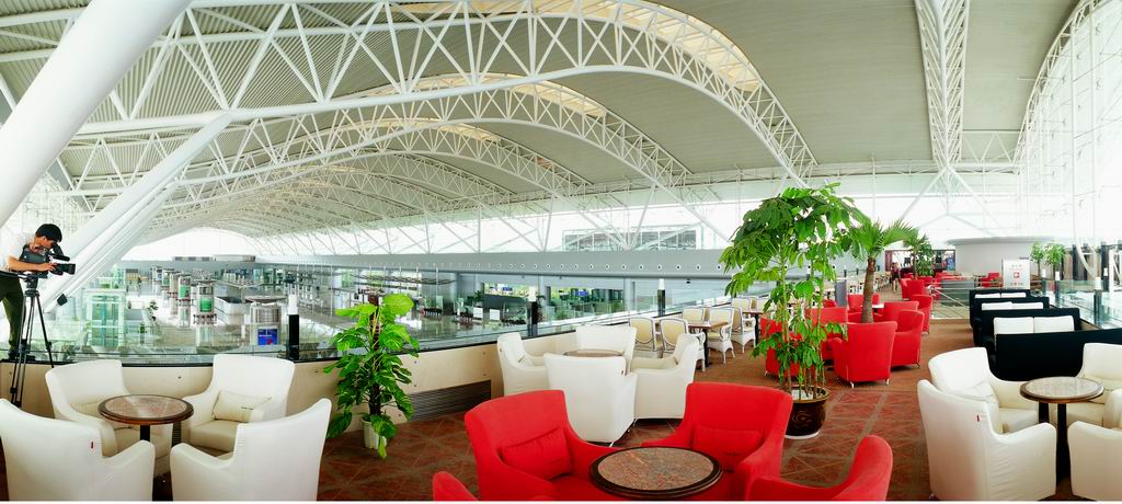 我公司在航站樓小空間設計中,體現了亞洲新城市特點的設計風格與歐洲注重場所感的傳統和諧的結合,注重“以人為本”的設計理念。體現了貴賓廳的高貴典雅;頭等艙的明快輕盈;餐廳的舒適華麗;咖啡廳的浪漫時尚,創造了調節人們精神的空間,使人對航空港有了一種新的舒適感和興奮感。