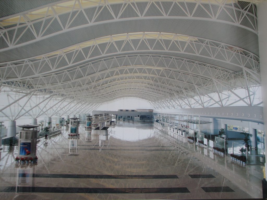 寧波櫟社機場二期建設航站樓工程是寧波市跨世紀標志性建筑之一。工程建筑面積為43500平方米,分上下兩層,底層為鋼筋混凝土框架結構,二層為大跨度鋼桁架無柱空間,主體屋面呈單曲或雙曲面形。