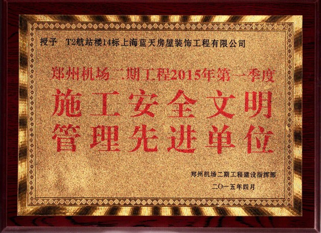 機場指揮部定期對各家建設單位、施工節點進行工作考評,我司在鄭州機場T2航站樓鋼構、安裝、消防、弱電、幕墻、精裝修等20多家參建單位中綜合排名第一;在鄭州機場二期航站區260多家參建單位中綜合排名第二;多位項目管理人員被評為“先進個人”。